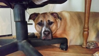 In the meantime, the vet said he should drop about 25 pounds. 25 pounds seems like a lot, but apparently his legs are sticks and not thinning down would be bad for his knees, etc. Now, I just thought he was a big boy since his dad was a mastiff after all, but I guess he could stand to loose a few. I can not remember when he last weighed 100 pounds. Has to be at least a year ago. Maybe even before his first birthday.