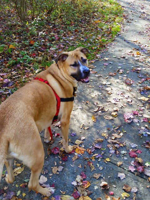 Brutus and I had a great fall hike this weekend. Pretty soon our walks will be fewer and far between as the cold weather takes hold. Perhaps a set of winter boots and a nice jacket will be on tap this Christmas for Brutus. If anyone knows a a good jacket to wear with a harness, I would love to hear it.
