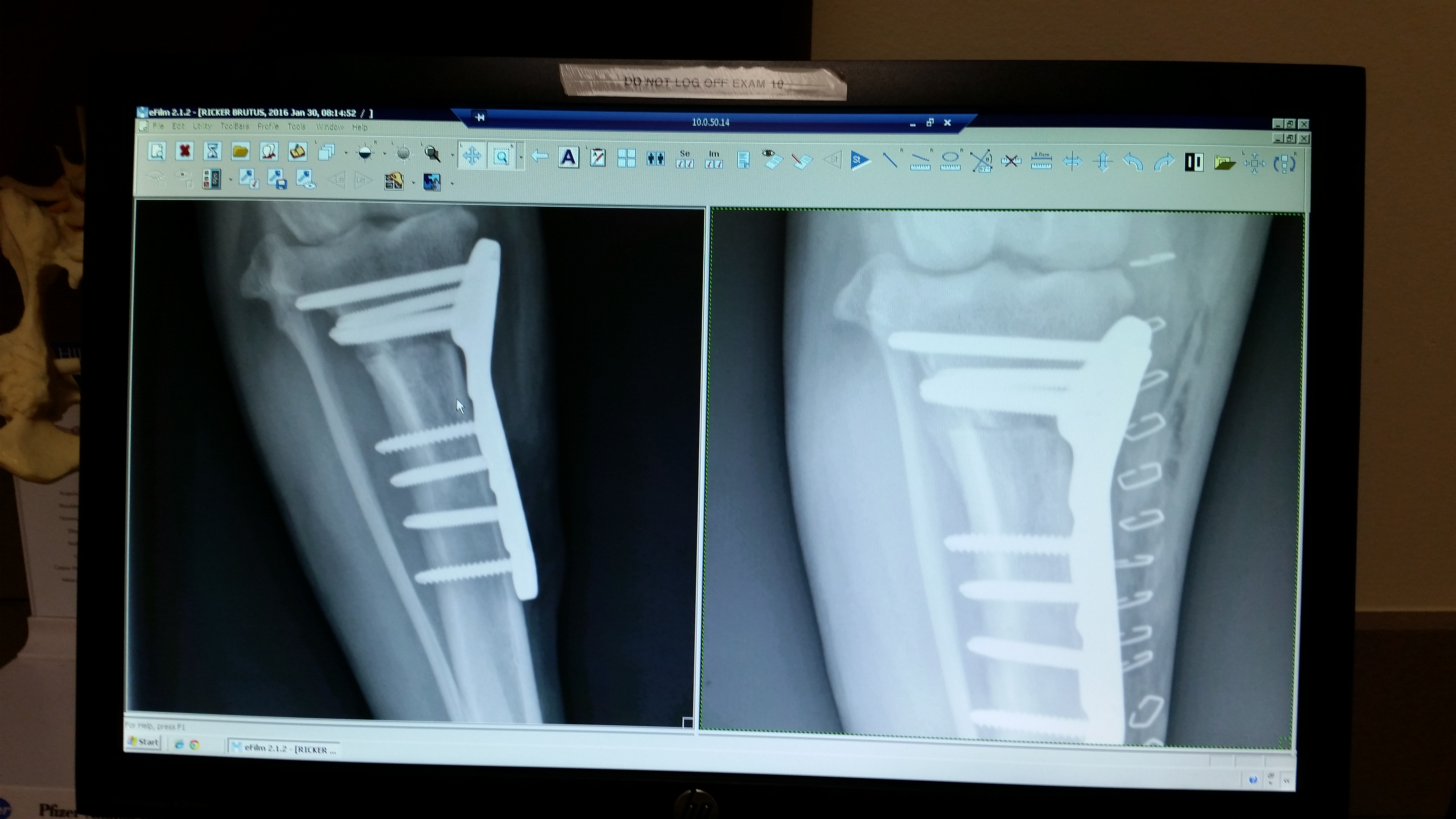 Brutus went in yesterday for his 8-week post-op X-rays and we got great news that his bones are healing nicely. While not 100% healed, we can now spend the next month increasing activity slowly in hopes of a return to normal activity in 4-6 weeks.