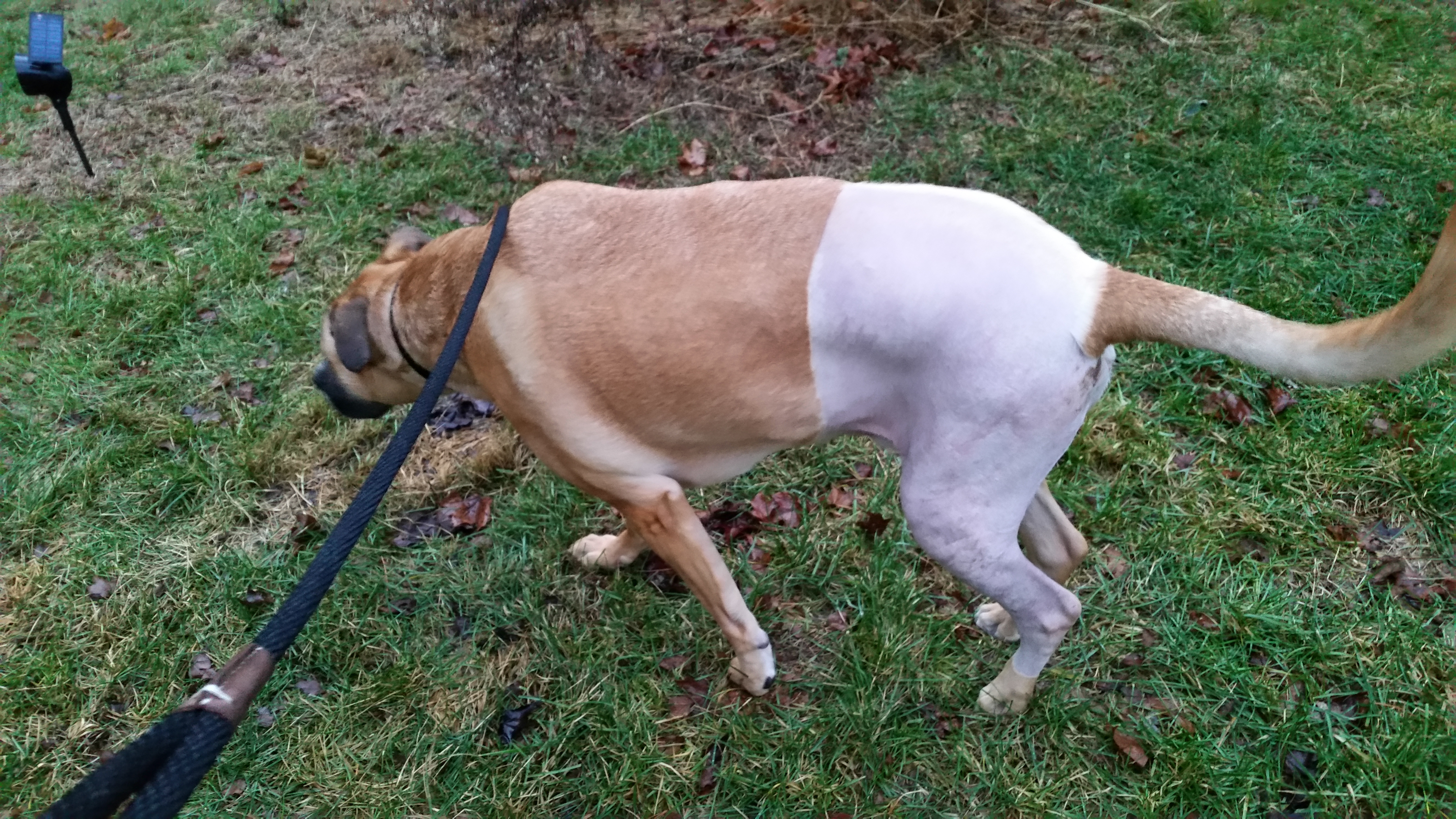 We are 6 weeks post surgery. Brutus is walking 15-20 minutes a day and using his leg most of the time with a slight limp. Looking into a new place to finish his therapy and look forward to getting him in the water treadmill.